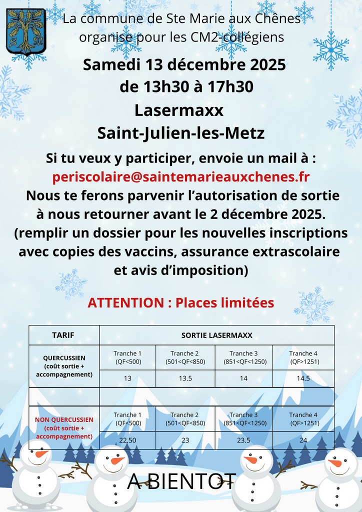 Les inscriptions pour la prochaine sortie du 13 décembre 2025 sont ouvertes, n'oubliez pas de vous inscrire!